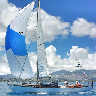 Well guys, the sad part of any adventure is the retracing of steps back to home. Roger, Bill, Scott, Sam and Laurie left our 1 week home at the Hawaii YC with the fanfare of the whole Suite Host Group. What a week, Wendy watching us like her own flock, vehicle, meals, transportation, continuous "smiles" and any other support needed. Westward headed for a PR rendezvous with the Ocean Cleanup group at 1200 which we milled around for 1 hour off of the Hilton Hotel, said our goodbyes to the organizing group and headed clockwise for Los Angeles. It was a pleasant sail in the lee of Oahu and all were enjoying the sail. We stuck our nose out from under the Island and we all now realize what homeward bound really meant.